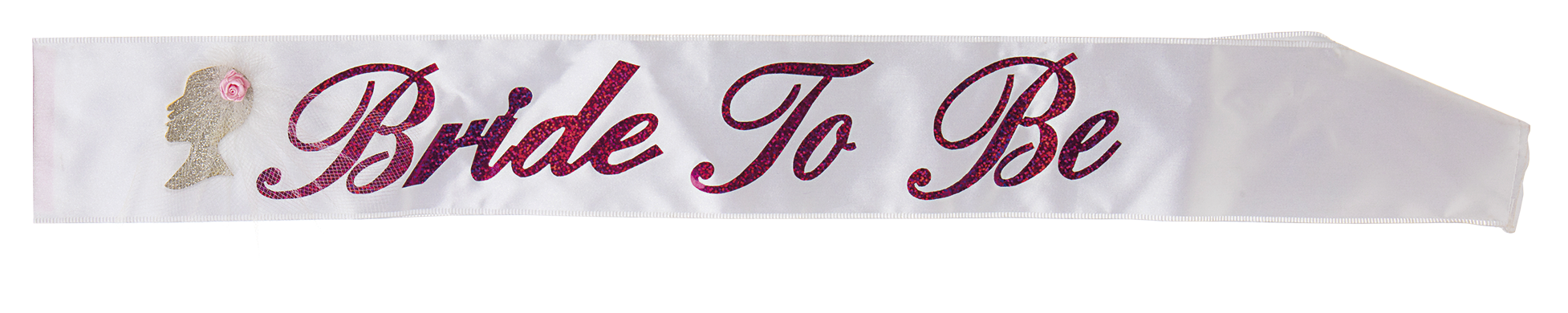 Hauska Bride to be nauha. Valkoinen pohja jossa pinkillä kimalteella teksti Bride To Be.