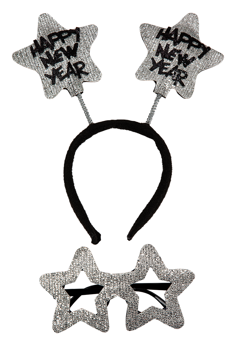 Happy New Year pääpanta ja tähtilasit