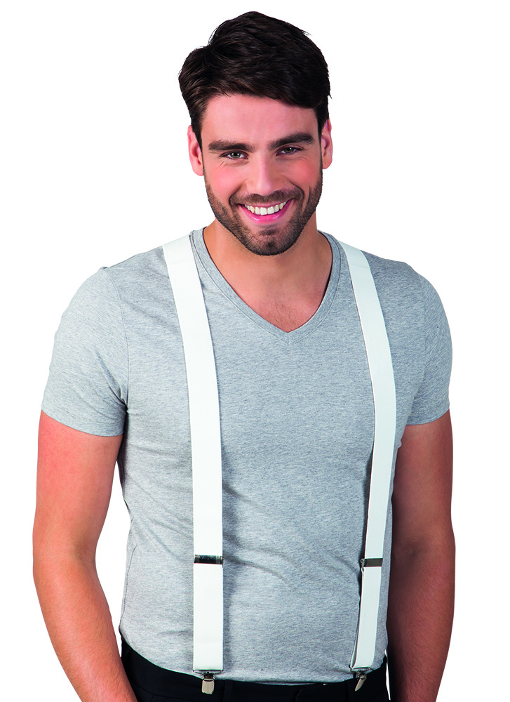 Valkoisenväriset henkselit.