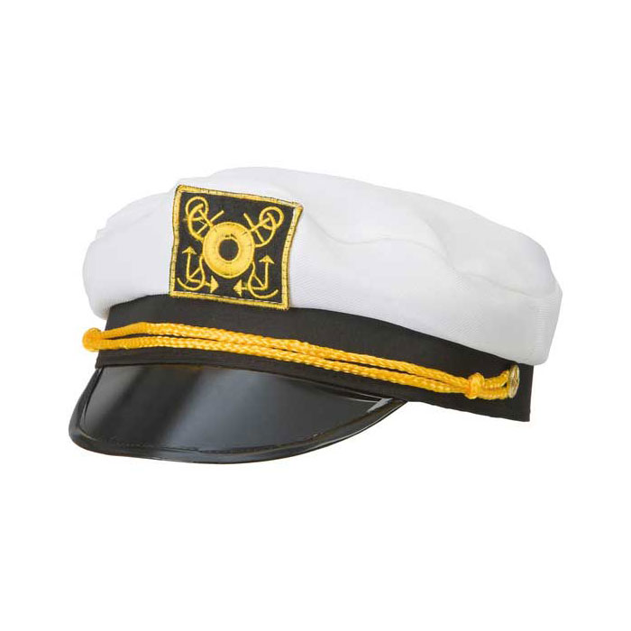 Musta lipallinen valkoinen kapteenin hattu.