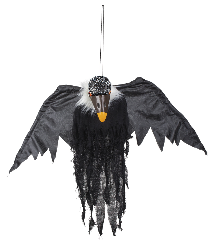 Korppikotka äänellä, valolla ja liikkeellä. Koko 110cm. Näyttävä elementti Halloween juhliin