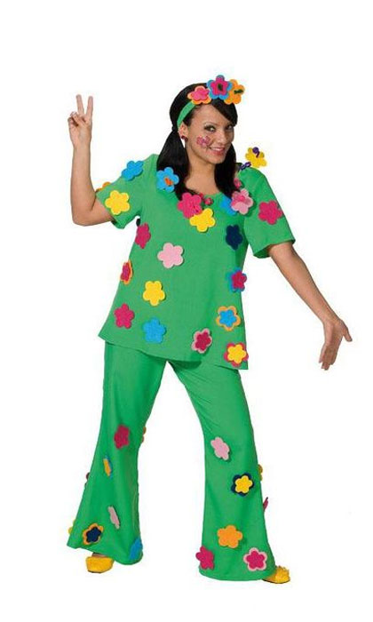 Kaunis vihreä pohjainen kukkaispuku. Pukuun kuuluu hiuspanta, housut ja paita. Koko 40. (joustovyötärö).