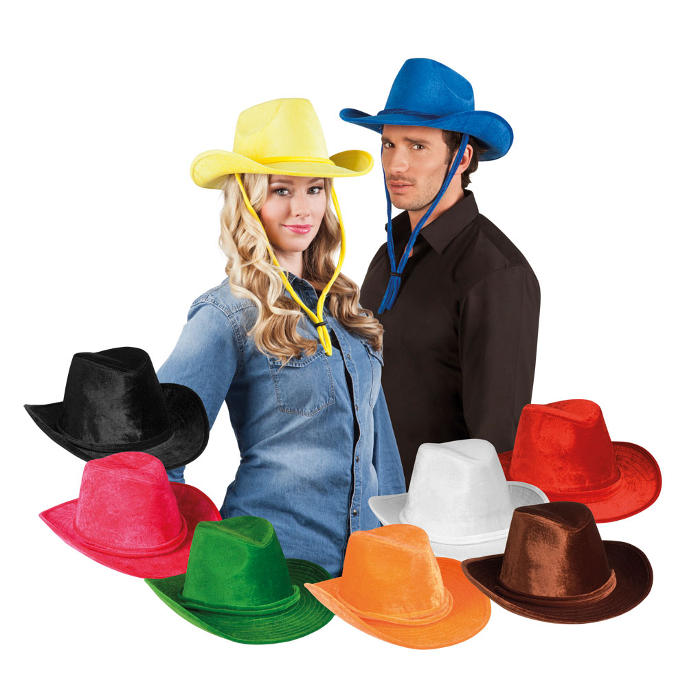 Samettipintaiset lännenhatut eriväreissä, valitse suosikkivärisi.