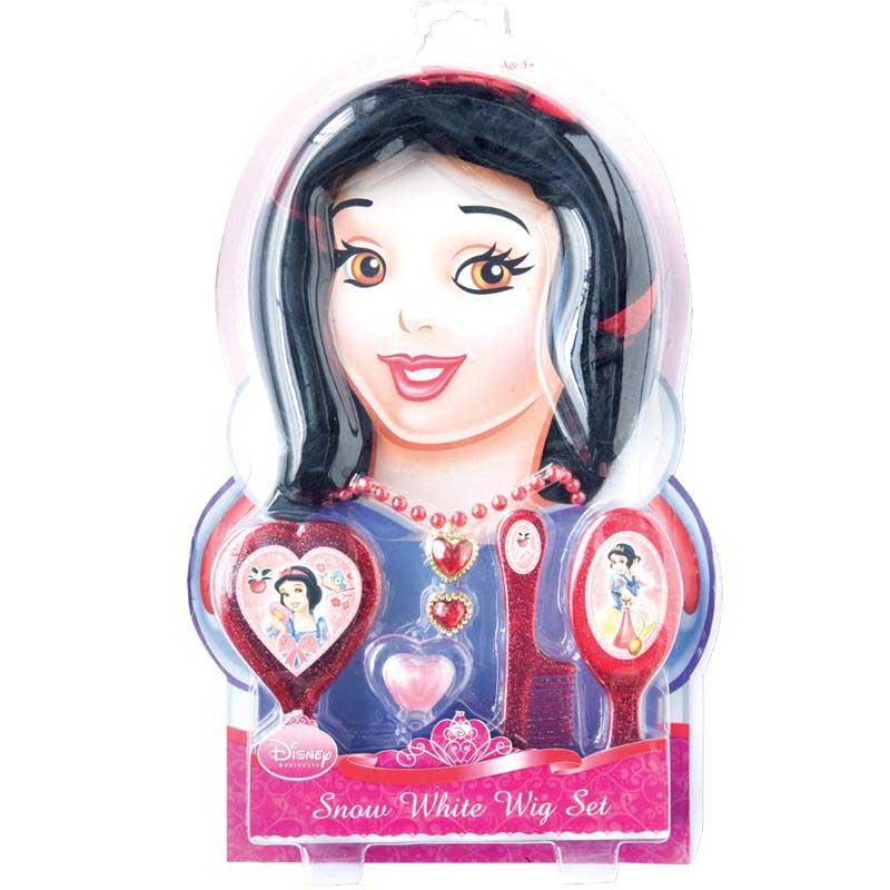 Settiin kuuluu lumikki peruukki, peili, kampa, harja, kaulakoru, sormus ja kasvokiille.
