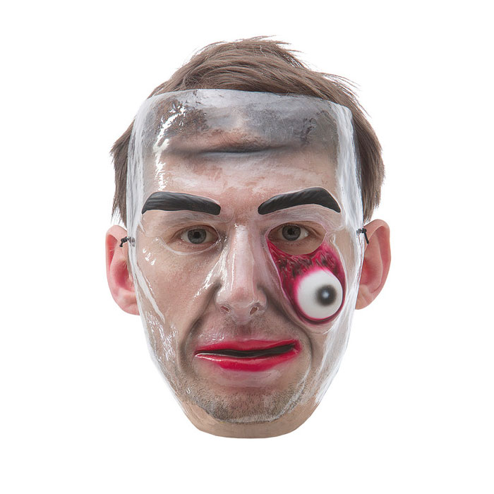 Läpinäkyvä naamari, erikoinen ja pelottava kauhunaamari. Omat kasvot kuultaa alta.