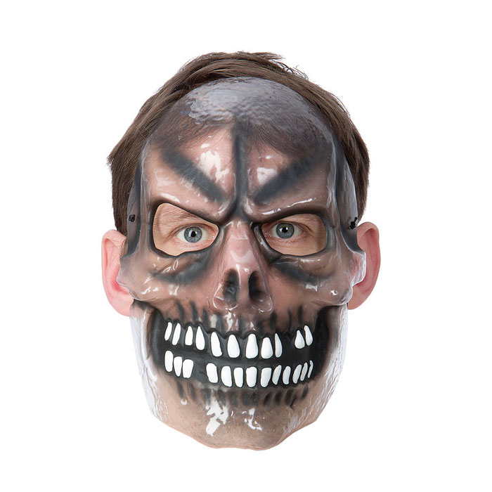 Läpinäkyvä pääkallo naamari, erikoinen ja pelottava kauhunaamari. Omat kasvot kuultaa alta.