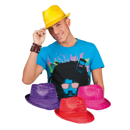 Värikkäät olkihatut, koko 59. Valittavana värit: Keltainen, Pinkki, Punainen ja Violetti