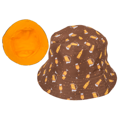 Hauska Olut lakki. Toisinpäin keltainen kuin aurinko ja toisinpäin oluthattu