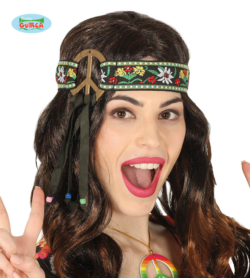 Peace pääpanta. Peace merkki muovia, muutoin kangasta.