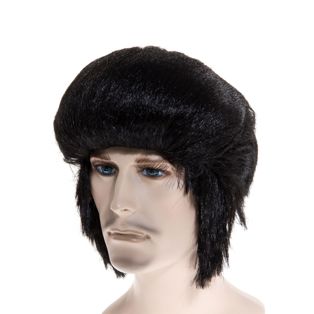Elvis tyylinen musta perukki. Pulisongeilla.