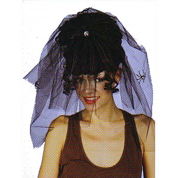 Mustia kiharoita näyttävän lakin/hämähäkki harson alla.