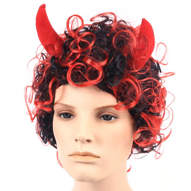 Puna-musta peruukki pirunsarvilla.