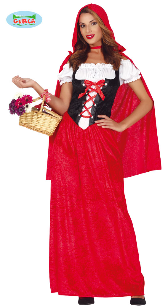 Punahilkka asu. Sisältää mekon ja viitan hupulla. Koko M