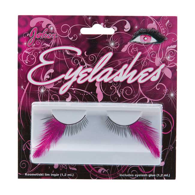 Silmäripset musta-pinkit, laidoilla pitkät pinkit ripset ja sisäsyrjällä lyhyemmät mustat.