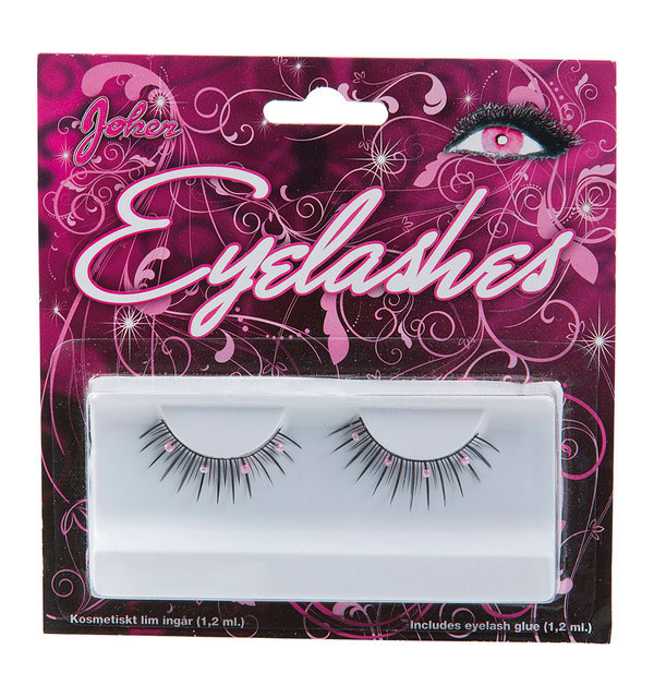 Silmäripset pitkät mustat pinkeillä palloilla.