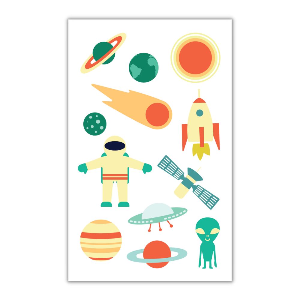 Kokoelma erilaisia avaruusaiheisia pika tatuointeja
