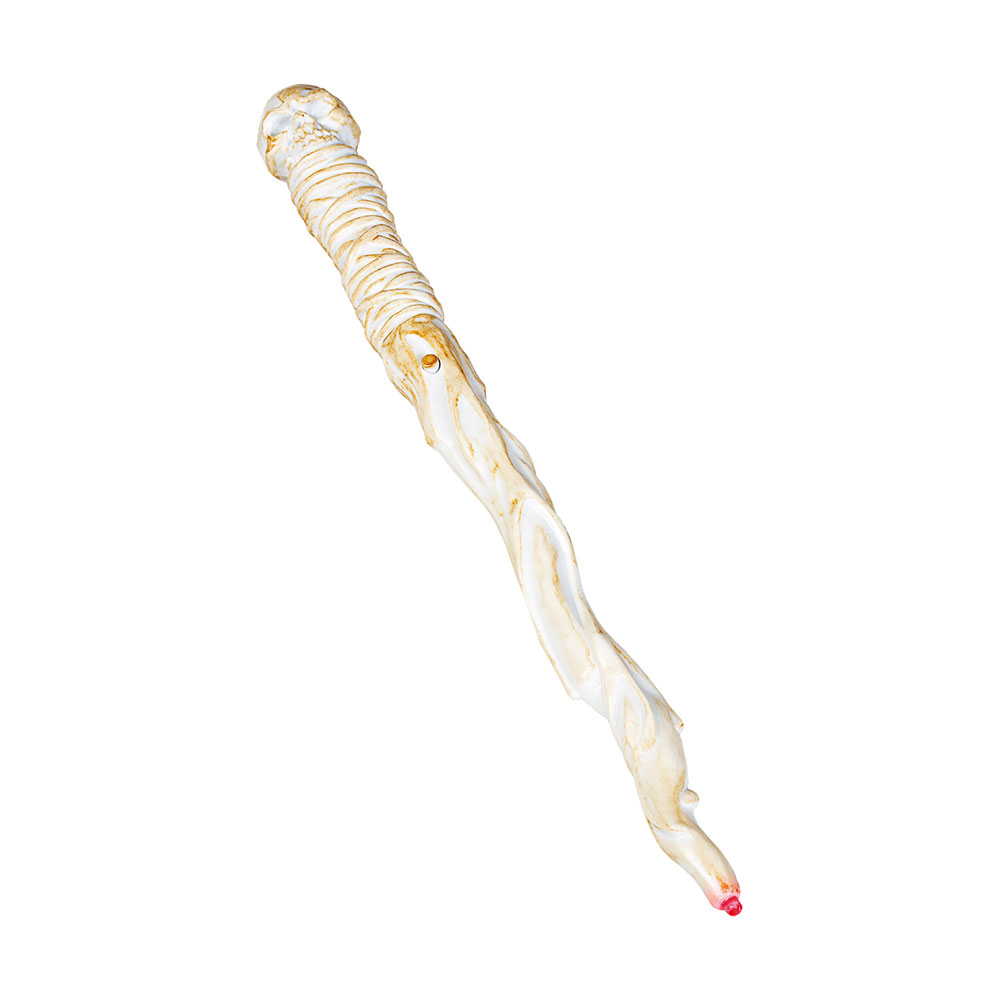 Valkoinen muovinen pääkallopäinen tikari. Äänellä ja valolla.