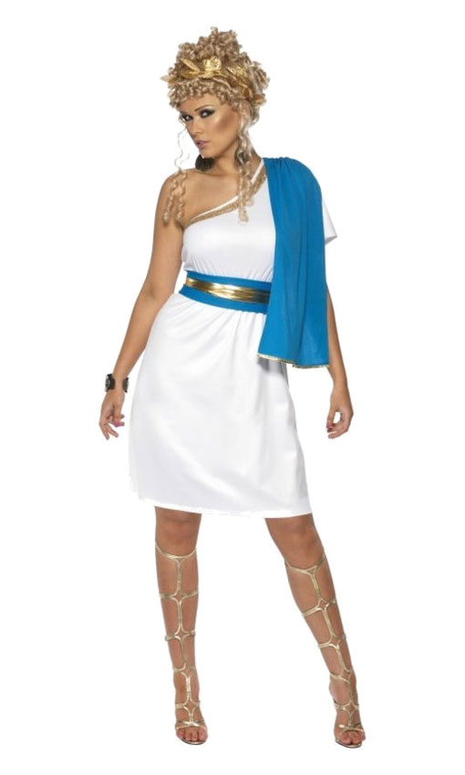Roomalainen tooga puku. Pukuun sisältyy tooga, hiuskoriste ja vyö. Koko: M (40-42). Rinnanympärys 94-98cm, vyötärö 75-77cm ja lantio 100-104cm.