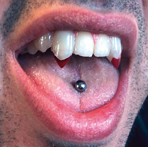 Deluxe malli, aidon näköiset pitkät veriset hampaat.