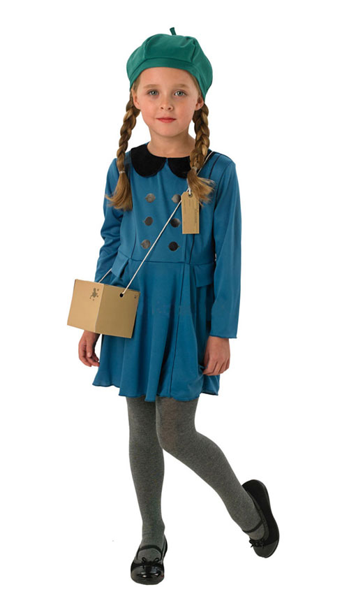 Ihana evakko tytön mekko. Pukuun kuuluu myös lakki ja itse väritettävä kaasunaamari sekä pikku laatikko. Koko ikäluokille 5-6V (110-116cm)
