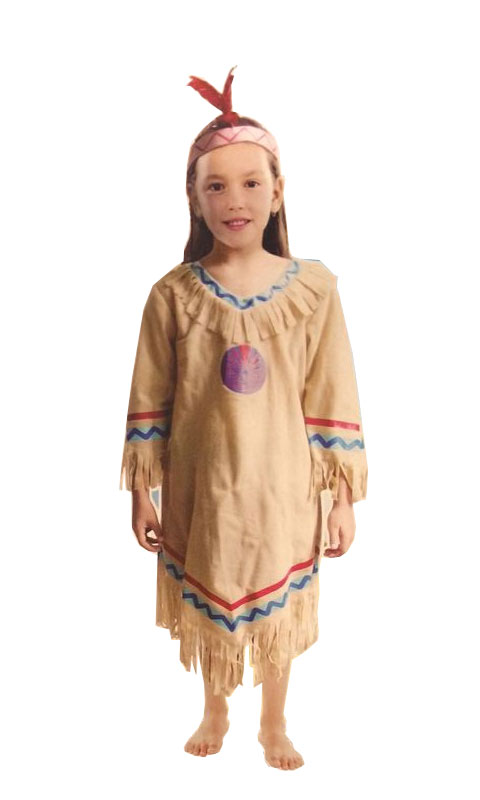 Tyylikäs intiaanitytön mekko, sis mekon ja pääpannan sulalla. Koko ikäluokille 5-7V (120cm)