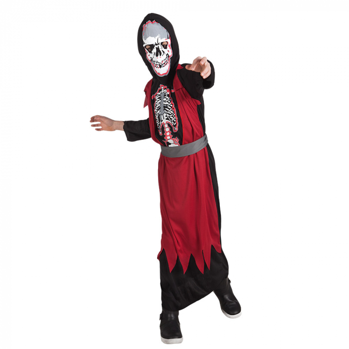 Verinen luuranko Halloweenasu. Sisältää kaavun hupulla ja vyön. 7-9 vuotiaan koko.