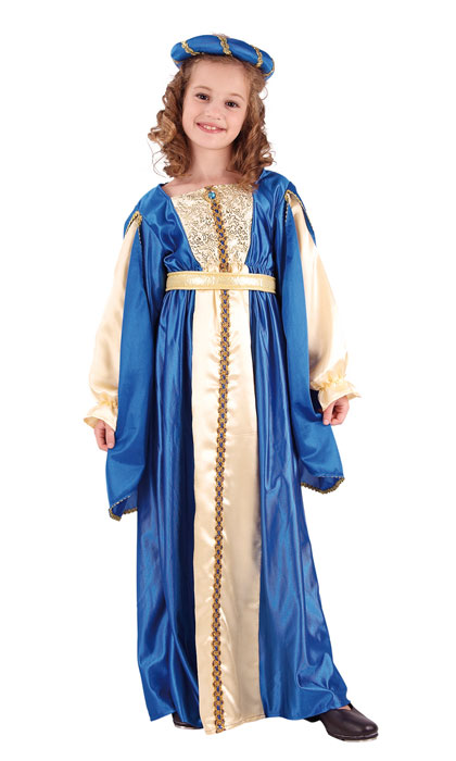 Kaunis pitkä sinikultainen mekko. Päähine sisältyy hintaan.