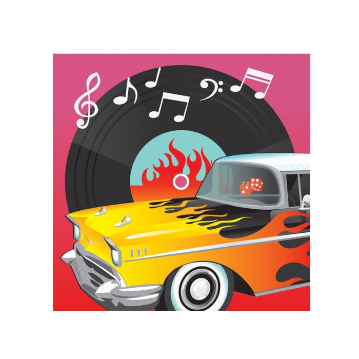 50´s luvun servettejä. Paketissa 16kpl. Koko 33x33cm