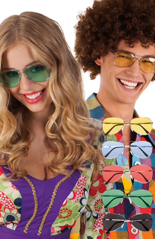 Aurinkolasi Party, valikoima erivärisiä laseja. Valittavana: Keltainen , Musta (tummat lasit) , Punainen, Sininen ja Vihreä