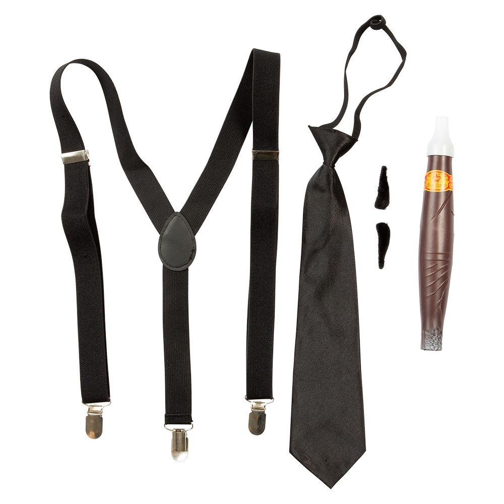Gansterisetti, sis. Henkselit, Kravaatin, Viiket ja Sikarin.