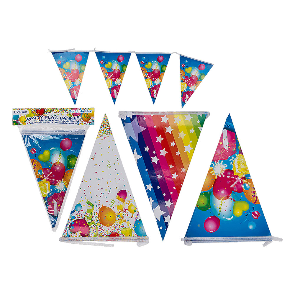 Viiri lippunauhaa 4m. 3 erilaista. (Halutessasi laita viestikenttään haluamasi mallin tuntomerkit. Sinipohja, valkopohja tai sateenkaari. )