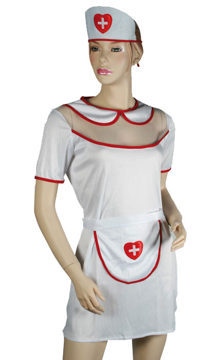 Puku sisältää sairaanhoitajan mekon, esiliinan ja pääpannan. Koko Onesize. Ohutta materiaalia.
