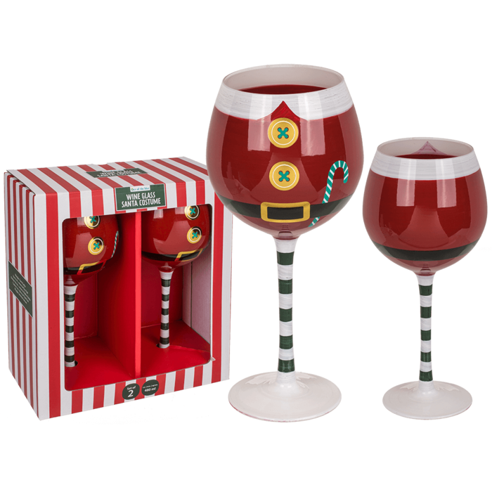 Söpöt joulupukin asu teemaiset viinilasit. 2kpl pakkaus. 480ml tilavuus.