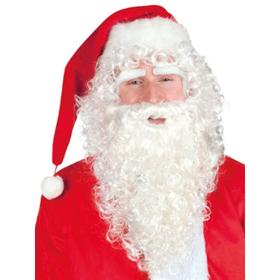 Joulupukin aidon oloiset hiukset, parta ja kulmakarvat.