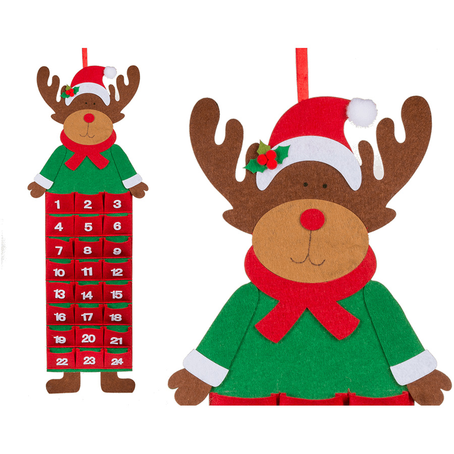 Hauska Jouluaiheinen poro kalenteri. 24 pussukkaa, yksi jokaiselle päivälle :) Koko 71x27cm.