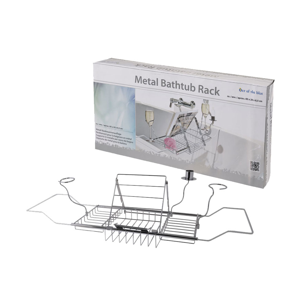 Hauska kylpyammeen päälle laitettava teline. Paikka kahdelle viinilasille, kynttilälle, teline kirjalle ja tilaa tavaroille. 85x20x8,5cm.