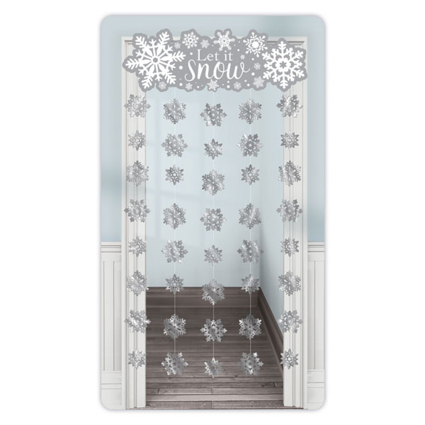 Kaunis kimalteleva lumihiutale oviverho. 5 roikkuvaa lumihiutale nauhaa. Koko n.1,95x0,99cm.
