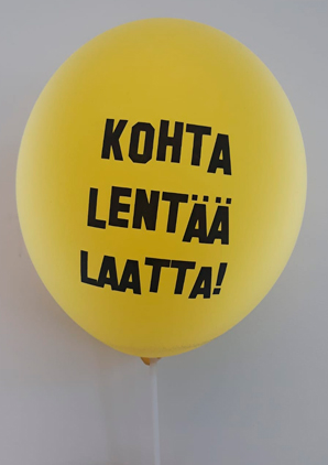 Ja pakolliset varoitukset ilmapalloista: Alle 8-vuotiaat lapset voivat tukehtua täyttämättömiin tai rikkinäisiin palloihin. Käytetään aikuisen valvonnassa. Säilytä täyttämättömät ilmapallot lasten ulottumattomissa. Hävitä rikkoutuneet pallot välittömästi.