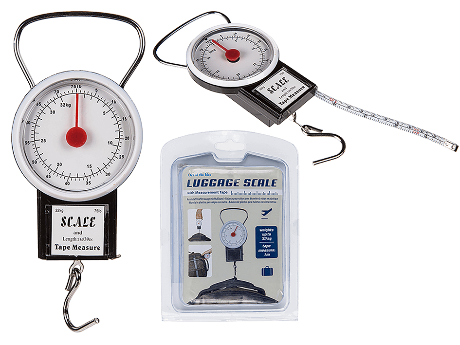 Jokaisen matkaajan toivelahja. Samassa puntari ja mittanauha. Pieni ja kevyt. Koko 11x7cm.