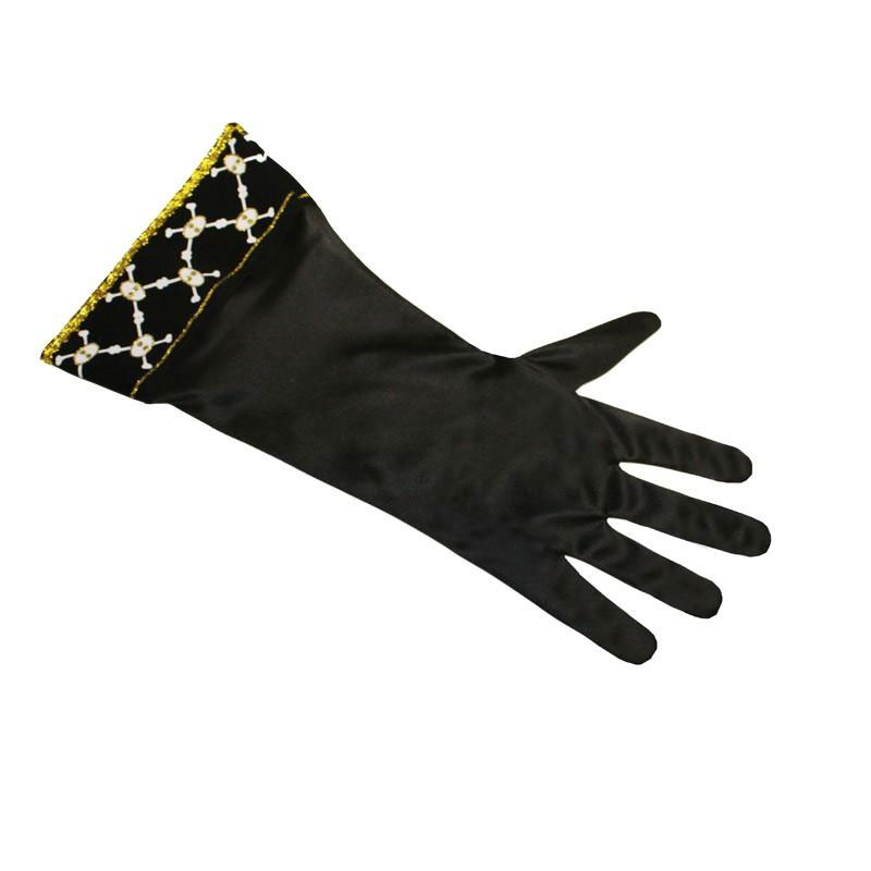 Kuvan mukaiset merirosvo käsineet joissa pääkallo hihansuu.