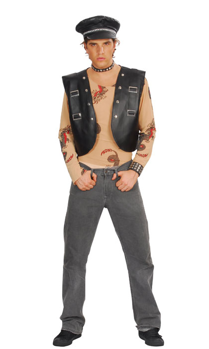 Pukuun kuuluu tatuoitu paita, niitti liivi, niitti ranneke ja kaulapanta sekä niitti lakki. Koko M/L.
