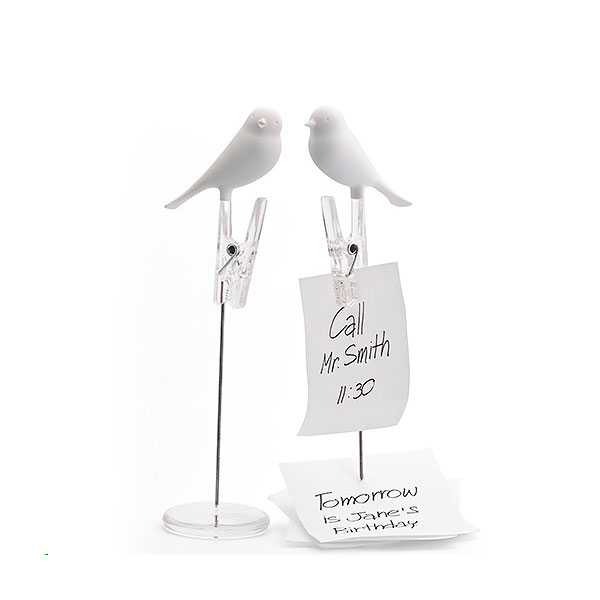 Valkoinen lintu Muistilappu pidikkeellä. Koko 22x7cm