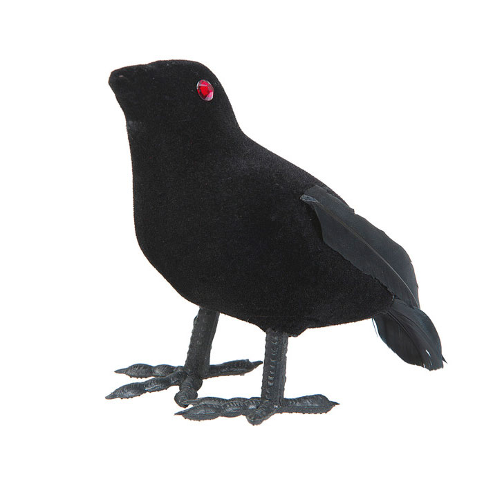 Musta korppi. Koko noin 6cm. (Huom tuote ei vastaa täysin kuvaa . on höyheninen ruskeilla silmillä. kiinnityseen rautalangat apuna.