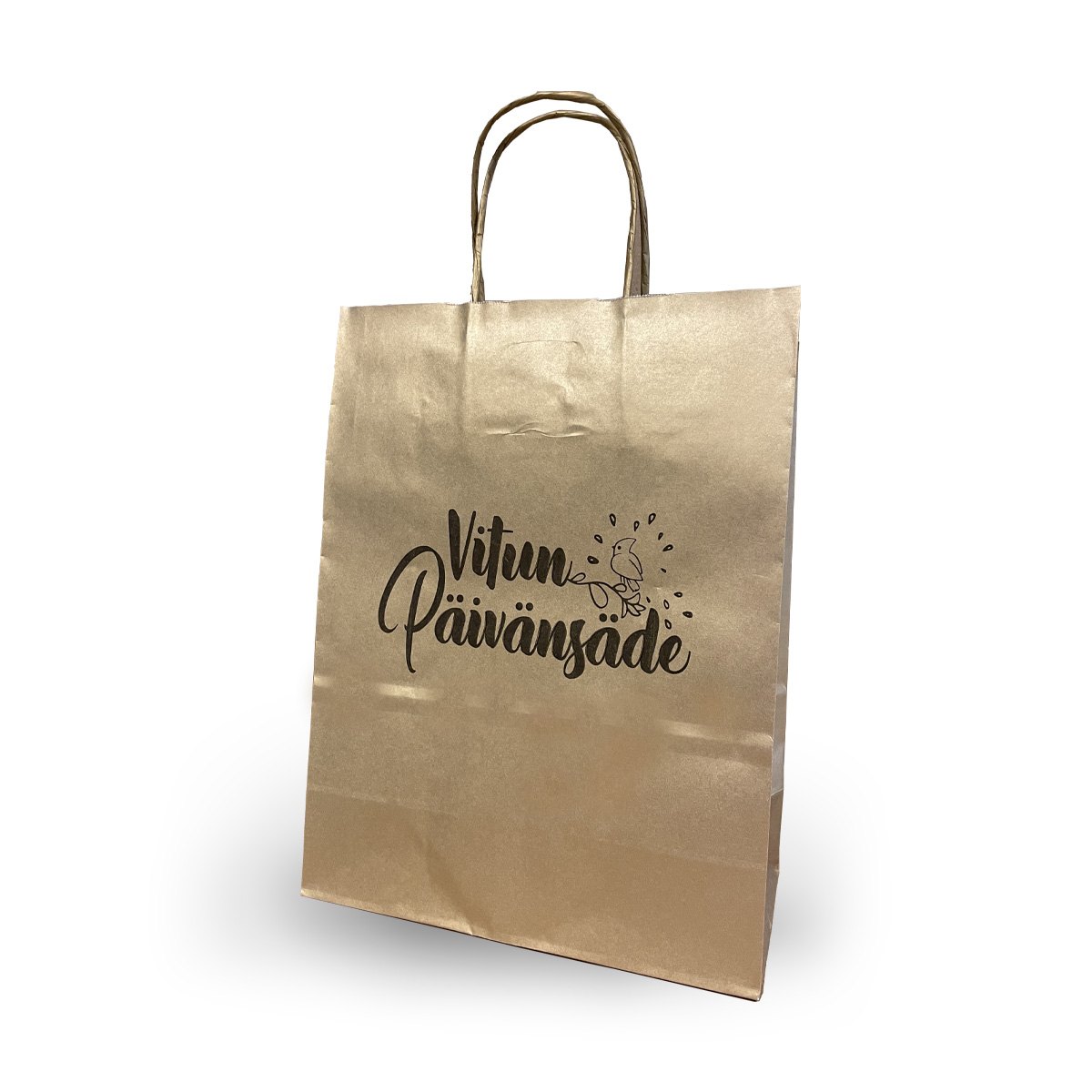 Tyylikäs kullanvärinen lahjakassi sille päivän pirteimmälle ja positiivisimmalle ihmiselle.