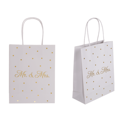 Valko kultainen kaunis paperikassi.Mr & Mrs 18x8x23cm