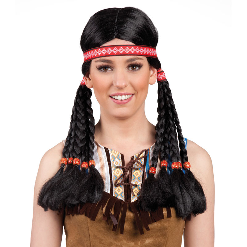 Naisten intiaani peruukki mustat pikkuletit. Pääpanta sisältyy hintaan.