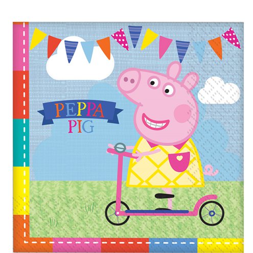 Pipsa Possu servetit. Toisella puolella potkuttelee Jyri. 16 kpl. Koko 33cm x33cm