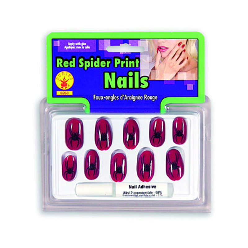 Pitkät punaiset kynnet mustilla hämähäkki kuvioilla. 10kpl + liima.