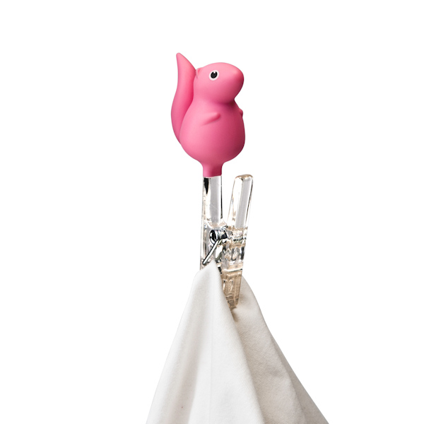 Pinkki orava piristämään kukkakimppua, pyykkinarua jne. Sisältää 2 oravaa, 4 pyykkipoikaa.