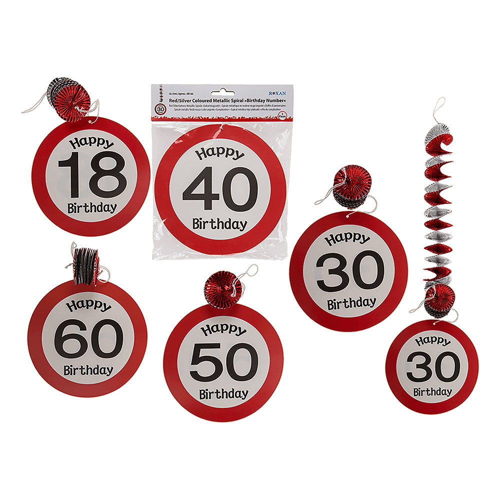 Roikkuvat Happy Birthday kiekurat, valittavana 18V , 30V , 40V , 50V ja 60V